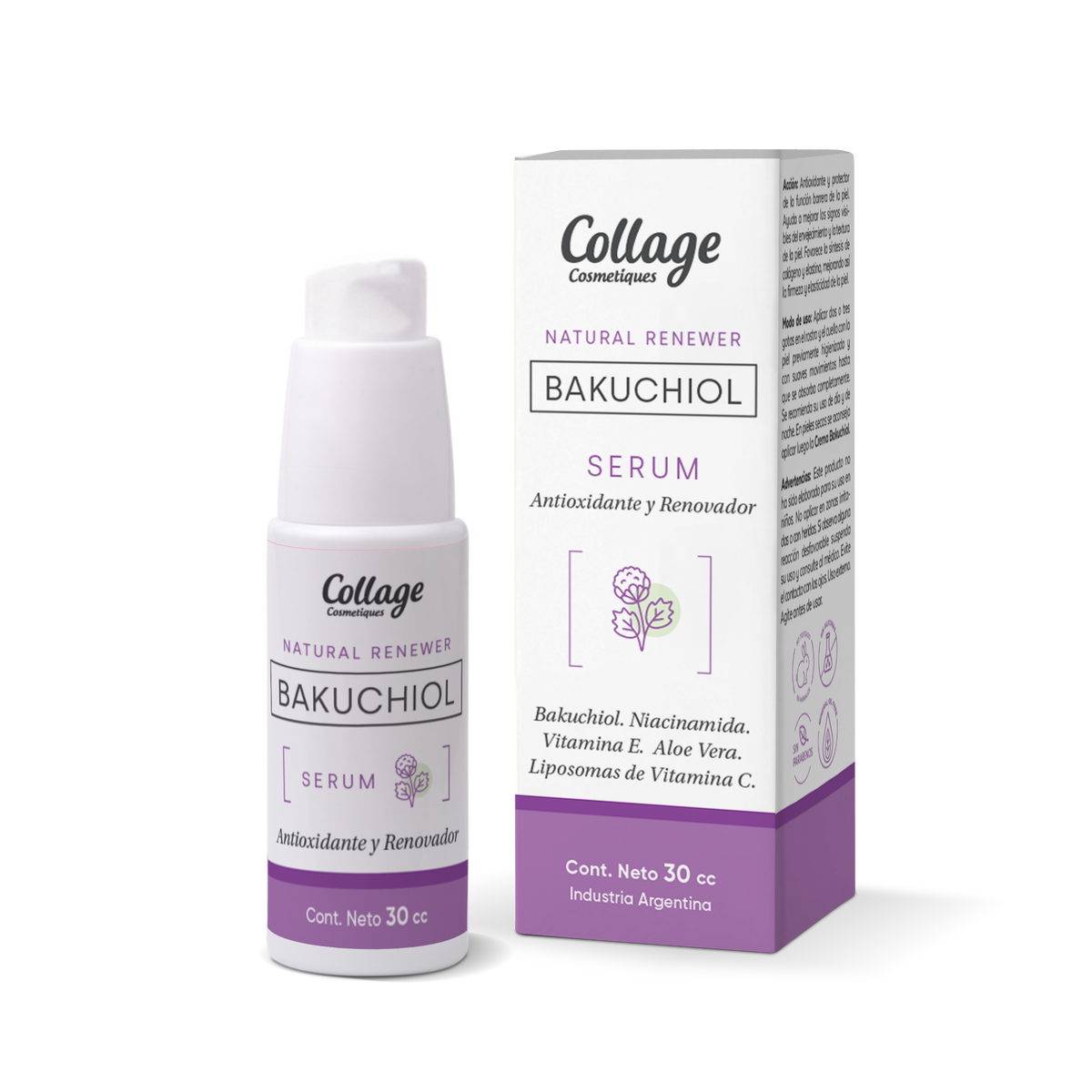 Domicilio: Aplicar dos o tres gotas en rostro, cuello y escote, luego de higienizar. Complementar con la Crema Bakuchiol para potenciar los beneficios.